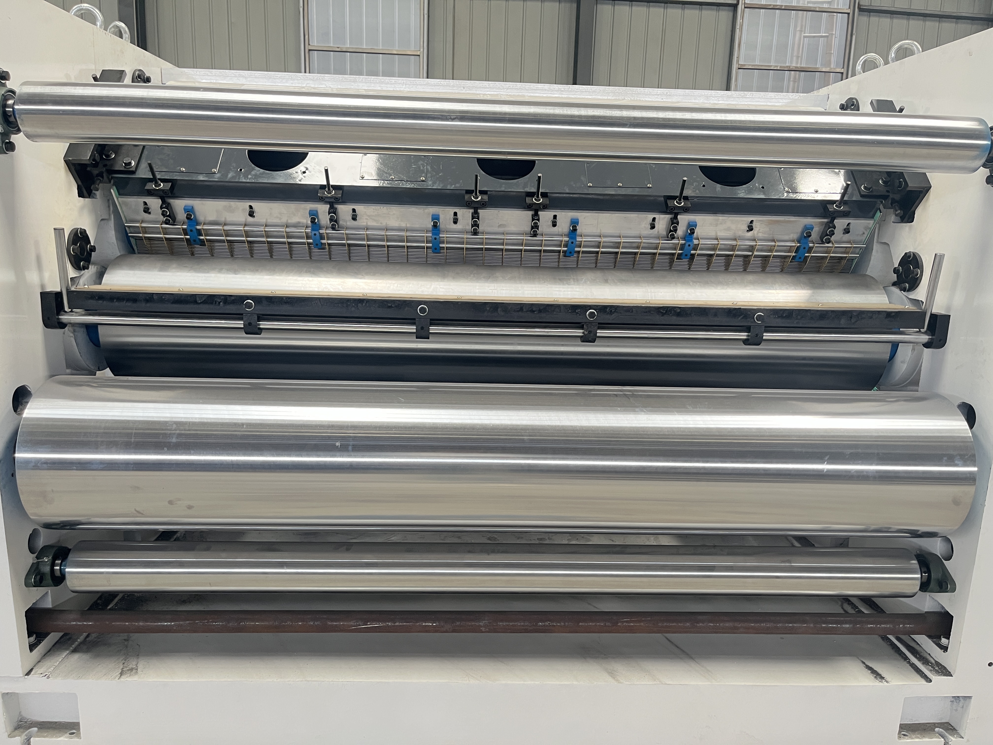 - Pressure roller: ¢370mm, ground and chrome-plated surface, air pressure controlled movement with buffer device